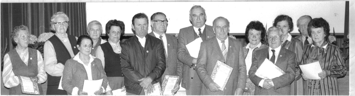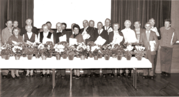 | 20. November 1988 | ![]() Zahlreiche Mitglieder des Obst- und Gartenbauvereins Au-Illertissen erhielten für ihre Verdienste Ehrennadeln in Silber und Gold. Eine Reihe von Gartenfreunden wurde zum Ehrenmitglied ernannt. Neben Auszeichnungen und Urkunden gab es für die Geehrten ein Blumenpräsent. Bild: Schmidt |