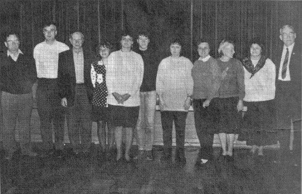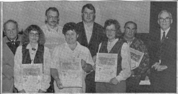 | 1995 | ![]() Ehrungen für die Teilnehmer beim Blumenschmuckwettbewerb des Obst- und Gartenbauvereins Au: In der vorderen Reihe (von links) Kreszentia Kienle, Johann Schütz, Maria Bihlmayer, Monika Ertle, Hedwig Müller, Marianne Mareis, Josef Schumacher, Xaver Berwanger und Hannelore Schlecker. Es fehlen Marianne Ertle und Barbara Mudrak. In der hinteren Reihe sind die Aktiven zu sehen, die vom Landratsamt geehrt werden: Beate Miller, Barbara Ritter, Elisabeth Kienle, Dora Dannemann, Maria Cavasin, Anni Berchtold, Hans Thoma mit Vorsitzendem Franz Ritschel. Es fehlen Gerd Sammer und Max Weinzierl. Text/Bild: Kuhn |