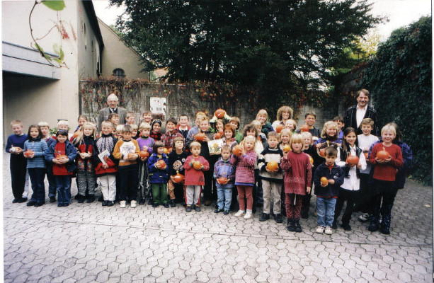 | 26. Oktober 1999 | 45 Kinder beim RübengeisterfestBeim Gartenbauverein Au Illertissen-Au (hak). War das eine Freude im Vereinsheim Au! 45 Kinder brachten ihren Rübengeist mit und stellten ihn zur Schau. Der Lohn vom Gartenbauverein Au blieb nicht aus. Für jeden Teilnehmer gab es einen Preis. Nach Sonnenblumen- und Kürbiswettbewerb folgten nun das Pflanzen von Rüben und schließlich das Schnitzen eines originellen Rübengeistes. „Sinn und Zweck dieses Wettbewerbes ist es, unseren Kindern und Jugendlichen Naturzusammenhänge durch ständige Pflege, das Wachsen und Gedeihen miterleben zu lassen", unterstrich Vorsitzender Franz Ritschel. Lobend erwähnte der Vorsitzende, dass die Schule Au wieder einen Schulgarten anlegt und die Kinder selbst das Wachsen und Gedeihen der Pflanzen kennenlernen können. Auch der Gartenbauverein Au würde sich einbringen und eine kleine Wetterstation errichten. Auch stehe der Verein mit Rat und Tat beim Anlegen des Schulgartens und Pausenhofes bereit. ![]() Eine sehr gute Beteiligung erfuhr. beim Obst- und Gartenbauverein der Rübengeister-Wettbewerb. Unser Bild zeigt nach der Preisverteilung einen Teil der Kinder, die sich an der Rübenkonkurrenz beteiligten mit Vorsitzendem Franz Ritschel. Bild: Hans Kuhn |