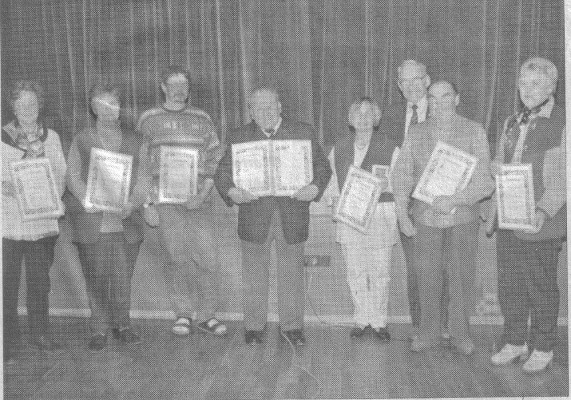 | 1999 | Diplome für die erfolgreichen Teilnehmer![]() Diplome für erfolgreiche Teilnehmer beim Wettbewerb „Naturnaher Garten" gab es bei der Herbstversammlung des Obst- und Gartenbauvereins Au in der Josef-Weikmann-Halle. Wie Vorsitzender Franz Ritschel (Dritter von rechts) mitteilte, nahmen 16 Mitglieder daran teil. Sechs von ihnen werden bei der Kreisversammlung in Schiessen noch geehrt. Diplome gab es für Maria Freff, Herta Walter, Fridolin Sauter, Franz Merkle, Christa Rogg, Hans Sauter und Barbara Ritter (im Bild von links). Nicht auf dem Bild sind die weiteren Ausgezeichneten Anni Berchtold, Dr. Wolfgang Trips und Walter Merkle. Text/Bild: Hans Kuhn |