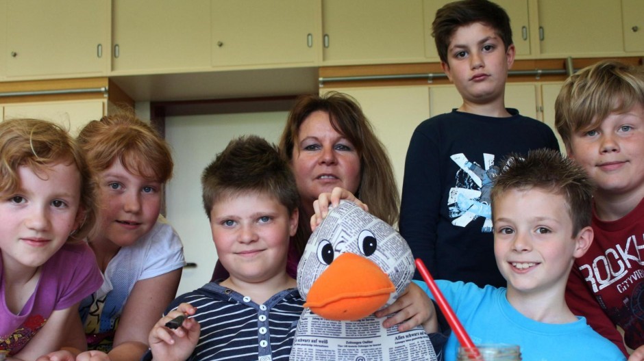 | 4. Juni 2014 | PAULA PRINT Bei den wilden Farben![]() Paula Print besucht die 3. Klasse der Grundschule Emersacker. Die Kinder zeigen ihr, wie man mit Pflanzenfarben malt: (von links) Annika (8), Ayline (9), Felix (9), Lehrerin Gabriele Spring, Filippo (9), Dennis (9) und Jannis (9).Bild: Florian Ankner Die Zeitungsente hat in der Grundschule erfahren, wie man mit Himbeeren und Brennnesseln malen kann VON PAULA PRINT UND SIMONE KUCHENBAUR Neugierig watschelte die Zeitungsente Paula Print in die Grundschule Emersacker. Die Kinder haben sie zum Malen mit Pflanzenfarben eingeladen. Was Paula dann in Handarbeitsraum erlebte, war in der Tat sehr überraschend. Die Allgäuer Wildkräuterführerin Tea Zedelmeier zeigte den Kindern wie aus Blüten, Blättern, Rinden, Wurzeln, Schalen oder Beeren ganz tolle Farben entstehen können. Schon im Römischen Reich, in Ägypten oder bei den Griechen benutzten die Menschen Farben aus Pflanzen, um ihre Gewänder zu färben, aber auch für die Malerei. Aus Brennnesseln wird Gelb und aus Brombeeren Rot „Brennnesseln muss man in einem Topf zerstampfen und kochen!“, erklärt die achtjährige Lara aus Heretsried. „Das wird bestimmt ein supergrün“, ist Paula schon voller Vorfreude. Doch siehe da – es entsteht eine eher gelbliche Farbe. Paula staunt. „Aus Brombeeren oder Himbeeren kann man Rot herauspressen“, weiß Annika aus Emersacker. Beim Malen mit den schönen Pflanzenfarben entstehen in der Klasse 3a wunderschöne Lesezeichen, die nach dem Trocknen laminiert werden. Manche Kinder sind so eifrig, dass sie gleich mehrere Lesezeichen herstellen. Paula Print tut sich mit ihren unförmigen Watschelfüßen ziemlich schwer, den Pinsel zu halten. Ihre Freude ist umso größer, als Magdalena Paula ein wunderschönes Lesezeichen überreicht, auf dem sogar Paulas Name steht. „Danke!“, haucht Paula ganz gerührt. Damit kann sie sich künftig auch ganz toll die Zeitungsseite markieren, auf der sie noch weiterlesen muss. Während die Werke der Kinder trocknen, bekommen es die Drittklässler mit der Geschichte von den wilden Farben zu tun. „Das Rot hat gemeint, es sei das Wichtigste“, erzählt Jonas später unserer Zeitungsente. Und dass die Farben miteinander in Streit geraten. „Das war eine richtige Farbenschlacht“, ergänzt Annika. „Ich durfte das Gelb sein“, berichtet Rebecca. „Das fand ich erst nicht so gut, weil ich Gelb nicht so gern mag. Aber dann habe ich das Rot gepikst und es wurde Orange“, fügt sie hinzu. „Am Schluss wurde alles grau, weil alle Farben sich vermischt haben“, sagt Jonas. „Aber dann kam das Weiß. Vom Weiß hat jede Farbe ihren Platz bekommen!“, so Jonas und zeigt Paula Print einen Farbkreis. „Das Weiß war ein bisschen wie Gott“, meint Rebecca ehrfürchtig. „Auf das Weiß haben die anderen Farben gehört und sie aufgehört zu streiten“. Jonas ist wild entschlossen, auch zu Hause einmal selbst Farben herzustellen. Seine Lieblingsfarben sind blau und rot. Und auch den anderen Kindern hat die spannende Stunde rund um die wilden Farben – die aus der Geschichte und natürlich auch die, die von den Dingen aus der Natur stammen – sehr gut gefallen. Und auch Paula ist ganz begeistert. Man braucht also gar keinen Wasserfarbkasten, sondern muss nur spazieren gehen und ein paar Dinge sammeln. Paulas Tipp: Wenn Du daheim selbst experimentierst, tu das nur unter der Aufsicht eines Erwachsenen! In den kommenden beiden Wochen ist Paula in Pfingstferien. Danach informiert sie sich in der Pestalozzischule in Gersthofen über das Instrumentenkarussell. |