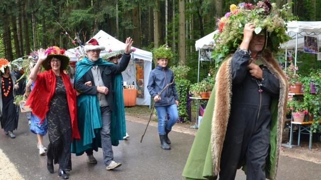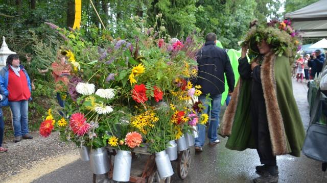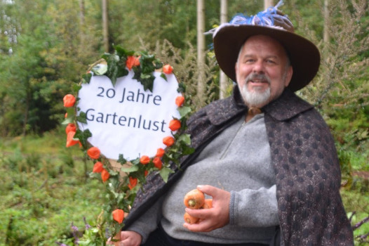 | 11. September 2017 | ILLERTISSEN Ein Festzug der Sinne zur 20. Gartenlust![]() Beim anachronistischen Festumzug zur Feier der 20. Illertisser Gartenlust hatte sich Staudengärtner Dieter Gaißmayer symbolhaft die ganze Last seiner Gärtnerei aufgebürdet. Gaißmayer symbolhaft die ganze Last seiner Gärtnerei aufgebürdet. ![]() Jürgen Willer vom Gasthaus Krone nahm im Bollerwagen am Umzug teil. ![]() Hutkönigin Janine Halder und Südtiroler Gartenprinzessin Anna saßen im Wagen. Der Freude am Bummeln und Feiern auf der Illertisser Jungviehweide tat der ein oder andere Regenguss keinen Abbruch. Was die Besucher sonst noch alles erlebt haben. VON REGINA LANGHANS Die Illertisser Gartenlust hat am Wochenende ihr 20-jähriges Bestehen gefeiert und die Besucher freuten sich mit: Beispielsweise beim Festumzug oder während einer Modenschau mit selbst dekorierten Hüten und Gästen wie Hutkönigin Janine Halder, der Ex-Europa-Floristikmeisterin Nadine Weckardt oder der Südtiroler Gartenprinzessin Anna. Außerdem sorgten Spezialitäten aus Carnac, Musik aus Elbogen und die Werke des in Marseille und Gannertshofen lebenden Fotokünstlers Alfons Alt für eine besondere Atmosphäre. Die Markttage auf der Jungviehweide haben Illertissen zum Paradies für florale Kunst, botanisches Wissen und tausende Besucher gemacht. Zeitweilige Regengüsse taten der Stimmung keinen Abruch. Die grüne Idee hat längst Gleichgesinnte gewonnen, indem seit den Anfängen Förster am Waldrand die Gartenlust mit Themen zur Forstwirtschaft ergänzen. Bereits zum 15. Mal gibt es auch den städtischen Kraut- und Rübenmarkt am Illertisser Rathaus. Bürgermeister Jürgen Eisen sagte, die Gartenlust habe Illertissen zur „Gartenstadt“ gemacht, die sich selbst mit vielen Blumen schmücke und einen Spaziergang von der Jungviehweide in den Ort lohne. Zum 20. Mal wurde auf dem Gelände der Staudengärtnerei Gaissmayer in Illertissen die "Illertisser Gartenlust" veranstaltet. Video: Wilhelm Schmid Organisator Wolfgang Hundbiss und sein Team hatten die Markttage mit „20 Jahre Gartenlust“ überschrieben und es den Ausstellern überlassen, ihren Stand in der Art einer Rückschau nach einem früheren Motto zu dekorieren. So trafen sich auf der Jungviehweide alle, die etwas mit dem Thema Garten „am Hut hatten“. Und wer Lust hatte, fertigte sich in der „Grünwerkstatt“ unter Leitung von Thea Zedelmeier zum Thema „Mut zum Hut“ im Beisein der deutschen Hutkönigin sowie der früheren Europa-Floristikmeisterin individuelle Kopfbedeckungen aus Naturmaterialien an. Der kleine Oliver Saar aus Egenhausen im Nordschwarzwald wollte es abenteuerlich: „Ich habe mich inspirieren lassen und mit meinem Papa einen Piratenhut gebastelt.“ Im Rahmen der Modenschau haben rund 20, teils selbst ernannte Hutmacherinnen ihre Dekostücke vorgeführt, wobei vom Hut an sich vor lauter Dekoration kaum noch etwas zu sehen war. Der Höhepunkt unter den vielen Hinguckern und Besonderheiten beim 20. Gartenmarkt war zweifellos der anachronistische – also nicht an eine bestimmte Zeit gebundene – bunt gehaltene Festumzug. Die Gartenlust-Macher und Initiatoren Dieter Gaißmayer und Wolfgang Hundbiss hatten sich wie andere Ehrengäste in fantasievoll-altertümliche Gewänder geworfen. Die Festkutsche wurde von einem achtfachen Ziegengespann – eigens aus Frankfurt angereist – gezogen. Den Festumzug führte die Musikkapelle Gutenzell an, gefolgt von Freunden des dort beheimateten Gaißmayer. ![]() Die Illertisser Gartenlust feiert ihr 20-jähriges Bestehen Bild: Regina Langhans, Andreas Brücken Für die Gartenlust waren wieder bis aus Jübek knapp vor der dänischen Grenze Renate und Siegfried Albrecht angereist. Selbst Inhaber einer Gärtnerei mit Café, können sie von den Marktragen – ihrer Meinung nach „einmalig in Deutschland“ – viel für sich mitnehmen. „Wir kaufen Pflanzen und mindestens eine Gießkanne“, sagen sie augenzwinkernd, „denn auf der Suche nach alten Gießkannen haben wir die Gartenlust überhaupt kennengelernt.“ Guter Nachfrage erfreuten sich auch die zahlreichen Vorträge auf dem Gelände der Gartenlust. Wolfram Franke ermutigte zum Beispiel, sogenannte samenfeste Sorten im eigenen Garten zu züchten. Damit blieben landestypische Kulturpflanzen der Nachwelt erhalten. In die Zukunft schauen im Sinne von „Klimaschutz und Nachhaltigkeit“ so hieß auch das Thema der Förster Peter Schaffner und Bernd Karrer im Pavillon beim Baum- und Kunstpfad. |