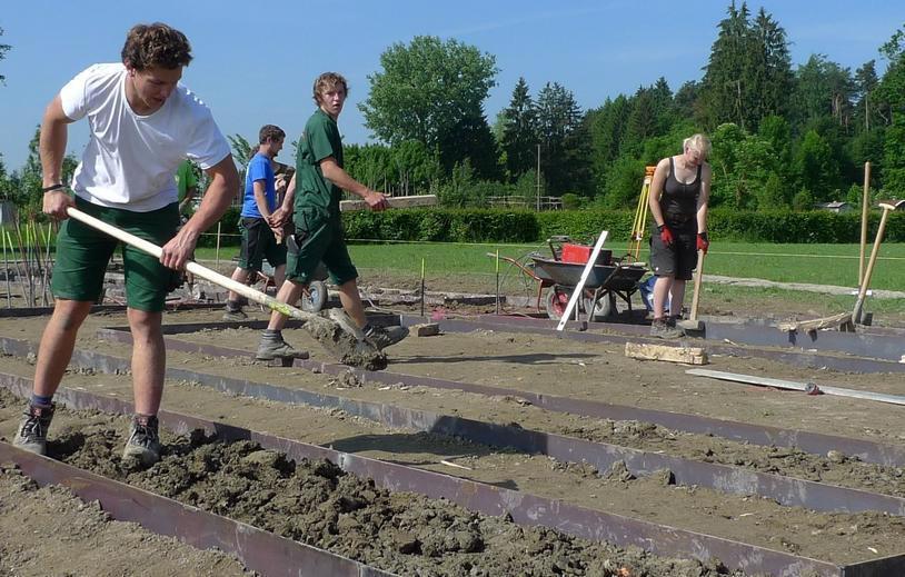 | 14. Juni 2013 | SWP: ILLERTISSEN Museum der Gartenkultur Illertissen: Obst-Kabinett nimmt Konturen an![]() Graben, schaufeln, messen: Azubis werkeln in Illertissen. © Foto: Inge Sälzle-Ranz Es soll werden wie Klein-Versailles: Beim Museum der Gartenkultur in Illertissen bereiten derzeit angehende Landschaftsgärtner das Formobst-Kabinett vor. Die Arbeit macht den jungen Leute viel Spaß. Neun Azubis aus sechs Landschaftsgärtnereien vom Bodensee bis nach Neresheim sind für eine Woche in Illertissen, um die Außenanlagen des Museums der Gartenkultur auf Vordermann zu bringen. Sie sind mit Spaten, Schubkarre oder Hacke zugange, auf dem 22 mal 10 Meter großen Stück Garten nördlich des Museumshauses lässt sich die künftige Einteilung bereits erahnen. Die jungen Leute haben Spaß an ihrer Aufgabe. Das Museum der Gartenkultur profitiert von dem Netzwerk der Gärtnereien, das es sich zur Aufgabe gemacht hat, Erfahrungen, Azubis und Ausbilder auszutauschen. Eigentlich hätte der praktische Teil schon am Montag beginnen sollen, doch der anhaltende Regen verhinderte dies. So standen erst mal eine Besichtigung der Innenräume des Museums und der Staudengärtnerei Gaißmayer auf dem Programm. Ausbilder Uwe Heider von der Gärtnerei Wagner aus Neresheim, der zusammen mit Reinhard Schauer von der Gärtnerei Bergles und Schauer aus Leibi die Azubis anleitet, kann auch diesem Programmpunkt nur Positives abgewinnen. "Bei so einem Rundgang kann man oft mehr lernen als aus Büchern." Dann ging es los: Der Rasen auf der künftigen Gartenfläche wurde von einem Bagger abgetragen, dann mussten die Höhen abgesteckt, der Grundriss für die Wege und die Beete abgesteckt werden. Der 21-jährige Rouven Förschner aus Neresheim bestätigt, dass er und die Kollegen dafür das nötige Grundwissen haben: "Vermessen lernt man gleich am Anfang der Ausbildung." Danach mussten die Flächen für die Kieswege auf die richtige Höhe gebracht, mit einem Vlies unterlegt und geschottert werden. Die Beete waren vorzubereiten, sie wurden mit Bandstahl eingefasst. Am Ende waren die Stützen zu setzen, an die die Spaliere für die Formgehölze gebunden werden. Vor allem Apfelbäume sollen dort einmal emporwachsen. Matthias Roth kommt von der Gärtnerei Bergles und Schauer aus Leibi. Der 18-Jährige ist begeistert von dem Projekt. Ihm gefällt, "dass man als Lehrling sozusagen sein eigener Baustellenleiter ist". Man könne die Arbeiten in der Reihenfolge machen, die man selber für richtig hält, habe viel Freiraum. Auch Daniela Burghardt von der Sipplinger Gärtnerei Wiedenhorn findet es aufregend. "Der Matsch nach dem Regen war schon eine Herausforderung", sagt die 21-Jährige. 13 junge Leute sind an dem Projekt beteiligt, das in ihren Augen gut die Gemeinschaft fördert. Sie sind in einem Illertisser Hotel untergebracht, loben die Biergärten der Stadt. Einige von ihnen werden in der zweiten Projektwoche vom 22. Juli an noch einmal mit von der Partie sein. Ein wenig bedauern sie, dass sie nicht auch die Bepflanzung machen dürfen. Nik Neubert aus Winnenden sagt, dadurch sei das Projekt "nicht ganz vollständig" für ihn. Doch diese Tätigkeit hält Dieter Gaißmayer, einer der Museumsbetreiber, nicht für möglich. Für die komplizierte Formierung sei die Fachkenntnis eines Pomologen notwendig. "Der zieht seit dem Frühjahr die Gehölze im Container." Äpfel würden hauptsächlich deshalb gepflanzt, weil sie am besten mit der feuchten Lage des Gartenabschnitts zurechtkommen. INGE SÄLZLE-RANZ 14.06.2013 |